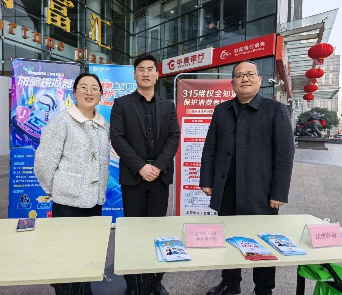 为迎接第44个“3・15 国际消费者权益日”,北京中永(合肥)律师事务所积极开展 3・15 公益普法专项活动,以专业法律服务为纽带,将法律知识转化为消费者的权益保障指南,让法治的温暖浸润每一位群众的心田。
