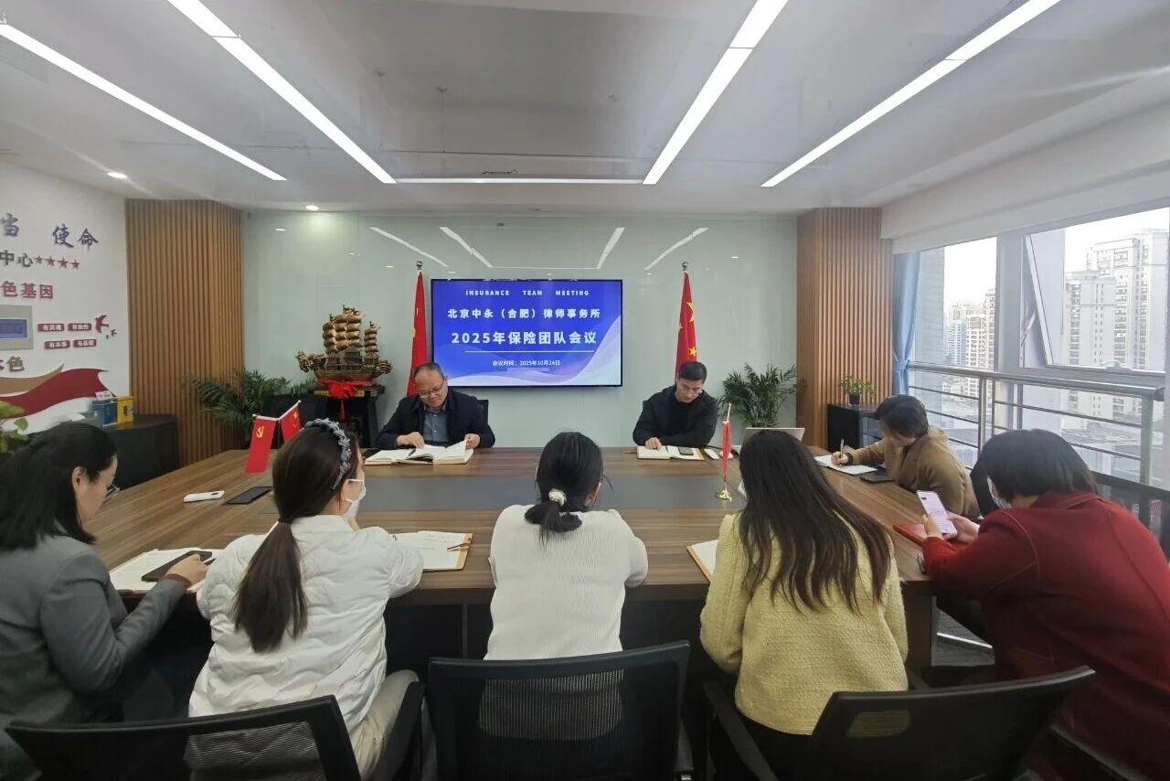 学海无涯,交流作舟;知识如山,探讨为径。2025年10月25日,北京中永(合肥)律师事务所(下称“中永合肥所”)中永保险专业律师团队2025年第4季度例会正式召开。团队成员齐聚一堂,围绕保险团队业务发展规划展开深入研讨,同时,大家针对近期办案过程中的疑难焦点问题集思广益。